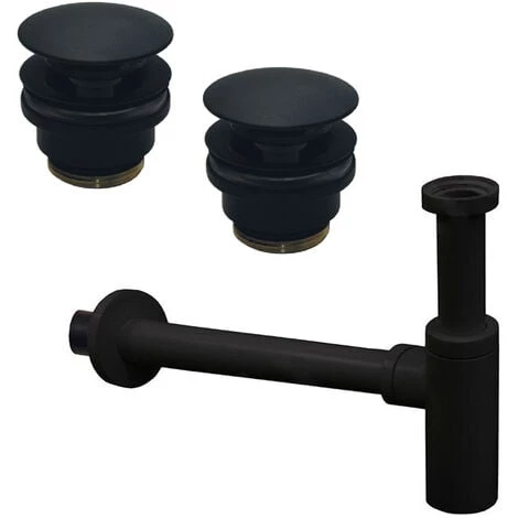 Lot de 2 bondes Click Clack pour Too Full avec siphon de lavabo Paffoni Light Exclusive Edition Noir Mat