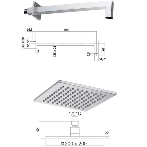 Bras de douche carré longueur 35 cm Paffoni ZSOF063CR350;