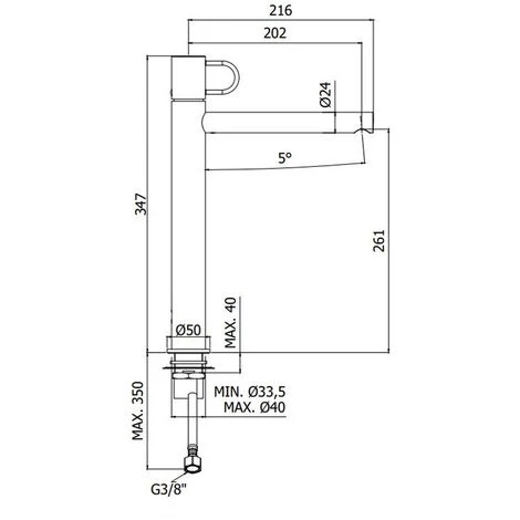 – n.m. 1 Mitigeur de lavabo haut en laiton , plus haut qu’un mitigeur standard, et donc idéal pour être combiné avec des lavabos à poser ou profonds, est complet avec aérateur M16x1 et jeu de 2 tuyaux en acier inoxydable 3 / 8 »G;