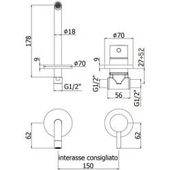 -n. 1 Mitigeur bain laiton complet avec mousseur M28x1, jeu de 2 excentriques 1/2″x3/4″ G et rosaces. Il est également équipé d’un support mural articulé en métal et d’une douchette en ABS avec flexible double emboîtement.