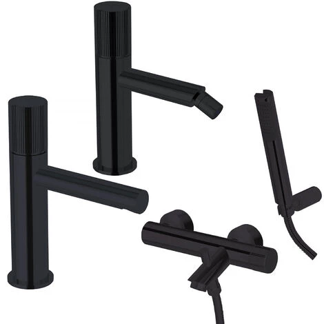 Ensemble de mitigeurs lavabo, bidet et baignoire avec douchette – Noir mat