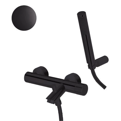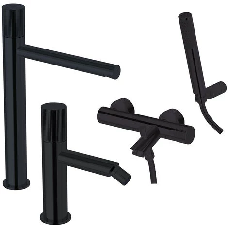 Ensemble de mitigeurs hauts pour lavabo, bidet et baignoire avec douchette – Noir mat