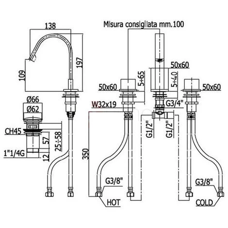 - Composition : Mitigeur de bidet à encastrer à trois trous ; aérateur caché M16.5X1; jeu de 4 tuyaux en acier inoxydable 3/8 « G; 3 bases métalliques 60×50 mm