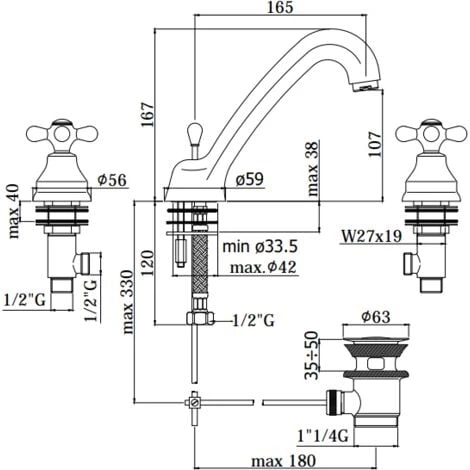 Vous pourrez combiner ce robinet avec une salle de bains de style rétro. Ce mélangeur 3 trous peut être personnalisé grâce au choix des finitions de surface et de la forme des boutons.