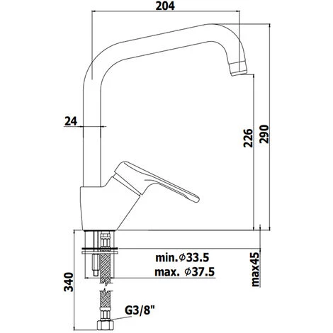 Mitigeur évier monotrou complet avec: aérateur M22x1F et jeu de 2 flexibles en acier inoxydable 3/8 « G. Bec orientable.