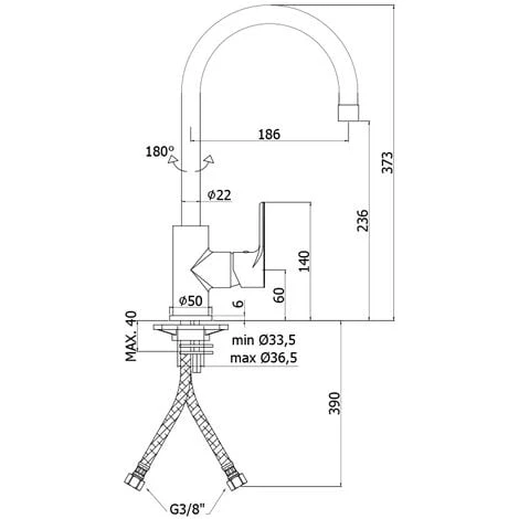 Mitigeur d’évier monotrou avec bec orientable en forme de parapluie d’un diamètre de 20 mm. Le mitigeur est entièrement réalisé en laiton chromé. La hauteur depuis le sommet est de 37,3 cm et le diamètre de la courbe par rapport au canon est de 18,6 cm. Le mélangeur est fourni avec des tuyaux en acier inoxydable. La ligne GREEN de Paffoni propose une ligne moderne aux formes rondes et linéaires. Le point fort du modèle réside dans le prix qui reste plutôt bas par rapport à un produit made in Italy à l’esthétique très bien finie. Le mélangeur proposé a une garantie de 5 ans, tant qu’il est installé correctement, en respectant toutes les instructions contenues dans l’emballage. Le coffret de vente comprend le mitigeur d’évier, les flexibles de raccordement et tout le nécessaire pour le montage du produit.