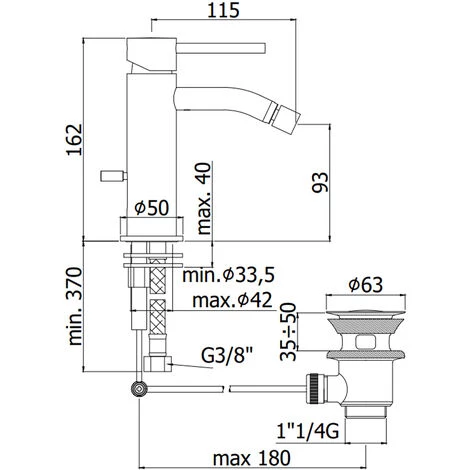 Mitigeur bidet avec vidage Paffoni Light fourni avec vidage complet avec vidage 1″ 1/4