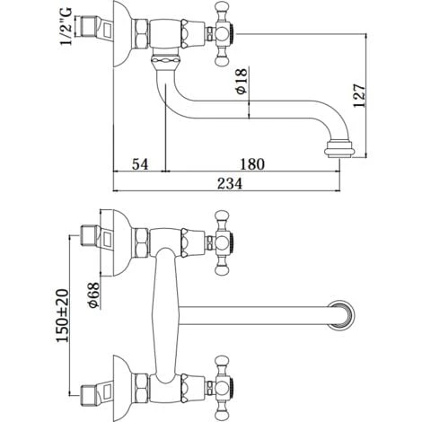 Un mélangeur d’évier de cuisine mural élégant et fonctionnel classique, avec un design qui rappelle une époque révolue et avec des lignes courbes et sinueuses. Vous avez un large choix de finitions: chrome, or, bronze, cuivre et chrome qui vous permettent de créer un environnement luxueux et unique