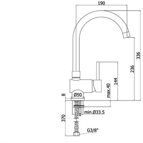 Mitigeur pour évier de cuisine paffoni modèle stick art. SK180CR avec bec orientable équipé d’aérateur M22x1.