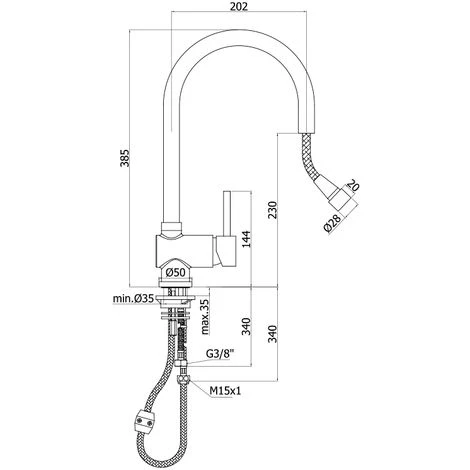 - CaractĂ©ristiques : douche extractible (jet unique) en mĂ©tal ; bouche rĂ©glable; lot de 2 durites inox G 3/8″ ; 1 durite inox M15x1 ; 1 durite nylon 1/2″ G x M15x1 cm. 150 avec plomb