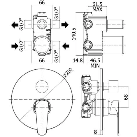 Caractéristiques : cartouche de dérivation incluse ; plaque métallique 200 mm; Connexions 1/2 « G