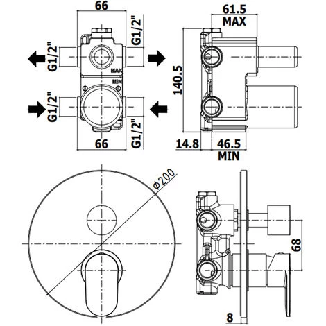 Type : mitigeur de douche à encastrer avec inverseur mécanique ;