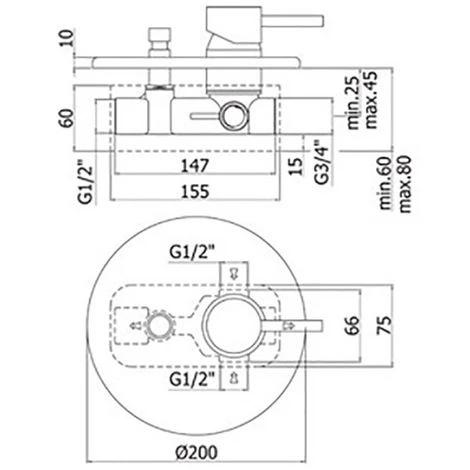 Type : mitigeur de douche à encastrer avec inverseur ;