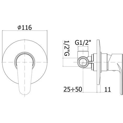 La plaque de recouvrement est en ABS chromé brillant et a un diamètre de 116 mm.