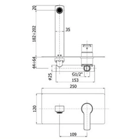 Mitigeur lavabo à encastrer bec plat L 200 mm avec mousseur et plaque rectangulaire. Paffoni ROUGE art. RED101CR ;