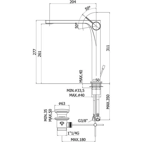 Type : mitigeur lavabo rallongé avec vidange automatique 1 »1/4 ;