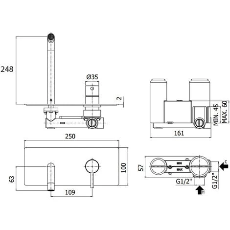 Type : mitigeur de lavabo à encastrer avec bec mural de 248 mm ;