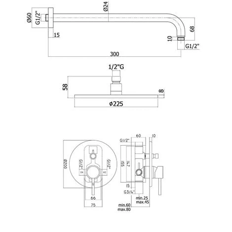 Pommeau de douche rond en laiton chromé de 225 mm de diamètre avec joint supérieur et raccord standard 1/2 « code d’article : ZSOF074CR