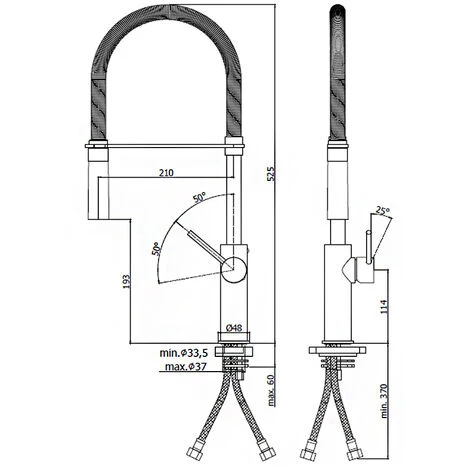 Dans la finition Steel Looking effet acier, ce robinet conçu pour la cuisine est en laiton avec un bec orientable et une douche Minimal (2 jets) en Abs avec des boutons pour régler le jet. Le mitigeur d’évier de cuisine présenté est livré complet avec son jeu de 2 flexibles inox 3/8 »G.