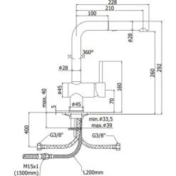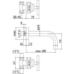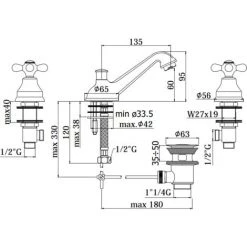 > Hauteur mitigeur : mi-haut 20>30 cm