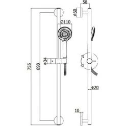 Barre Coulissante Avec Tige En Métal Et Douche Paffoni Brio 4 Jets