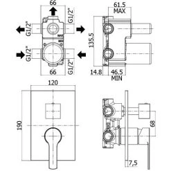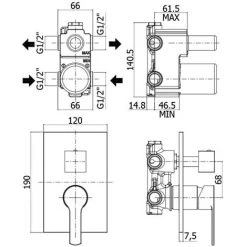 Mitigeur De Douche à Encastrer 2 Sorties Paffoni Tango Avec Inverseur Cartouche Et Plaque 120×190 Mm