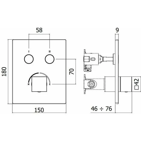 Mitigeur douche à encastrer seul partie externe à 2 fonctions avec plaque rectangulaire 150×180 mm |Paffoni Rubinetteria COMPACT BOX CPM518